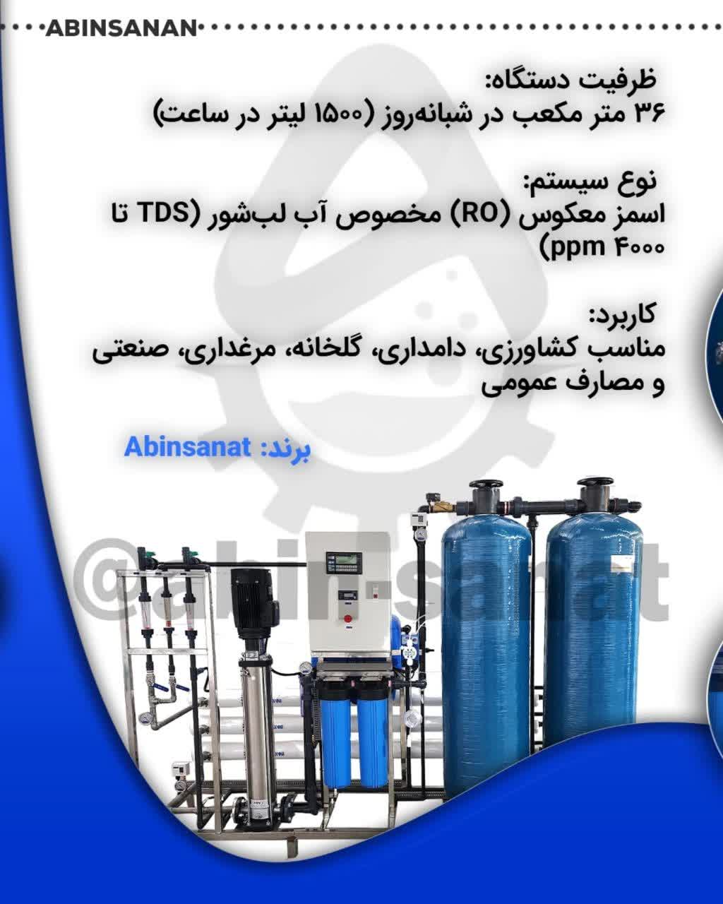 دستگاه تصفیه آب صنعتی با ظرفیت ۳۶ متر مکعب